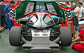 シャーシ下面を大きくえぐるような形で装着されているリヤディフューザー。フォーミュラカーを彷彿させるような巨大ディフューザーのおかげで、コーナーを踏んでいくことができるようになったそうだ。 |