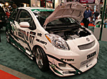 エクストリーム・ディメンジョンズというエアロメーカーがメイクした700hpのフィット!! 2.4Lエンジンをベースに、2.6Lへとスープアップ。タービンはギャレットのGT35をチョイスしているとのこと。インテリアに張りめぐらされたロールケージにセットされているNXボンベは、インタークーラー冷却用のために搭載されているそうだ。なおボンネット、ボディキットなどはすべてエクストリーム・ディメンジョンズ製。 |