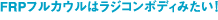 ホンモノの180SXを使い、フロントフェイス、テール部分、屋根の3ブロックにわけてFRPで直接型抜きカウルを製作、その3つを張り合わせてフルカウルにしたんだ。できるだけ重くならないようにFRPマットも1枚重ねだから、ひとりで持ちあげられるほど軽いんだよ。 |