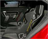 後部座席でもスポーティな走りを楽しめるというコンセプトなので、後ろも本格的なフルバケットシート。前席のヘッドレスト裏に埋め込まれた後席用モニターには、ドライビングに関する情報が表示され、ドライバーだけじゃなく全員で情報が共有できる。 | |||
