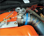 サージタンク側を加工して装着されたインフィニティスロットル。これで、バタフライ径は純正スロットルの70φに対して80φとなり、面積比では30%以上も拡大。エアフロレス化やサージタンク加工と相まって大幅な吸気効率アップを達成している。 |