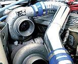 ワンオフ42.7φエキマニを介してセットされたTD06-20G。エアクリーナーどころか、ファンネルさえも装着してないところがオトコらしい。 | ![]() |