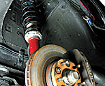 フロントサスをストラットごとZ31後期用に交換することで、BNR32キャリパーのボルトオン装着を可能にしている。パッドはルービックスだ。また、車高調ユニットはTRDダンパーにHKSの直巻きスプリング(8k)を組みあわせたワンオフ品がセットされる。 | ![]() |