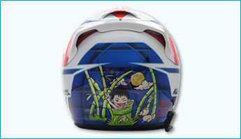 | ド派手なグラフィックやカラーリングでドレスアップしたD1マシンって、どれも個性的で見ているだけで楽しいよね。そんなマシンに乗っているくらいだから、ドライバーが被っているヘルメットも超個性的。なんせヘルメットは、マシンとちがってよりドライバー自身の個性や好みが反映されるものだからね。 | でも、ヘルメットは走行中にしか使わないもの。だからあまりお目にかかれないんだよね。というわけで、ランキング上位の選手を中心に、自慢のヘルメットをドド〜ンと紹介! これを見れば、キミもD1マニアの仲間入りだ。 |