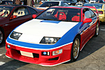 ホワイト&ゴールドのカラーリングが目を引くZ32。ワンオフで製作されたヘッドライトは3連のプロジェクターを埋め込んだもの。とても個性的なフロントフェイスになっている。 | ![]() |