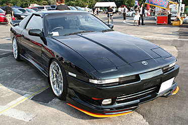 攻撃的なルックスが特徴的な2台の80スープラ。これは、トップシークレットのV12スープラとおなじフロントフェイスに変更されたものだ。 | ![]() |