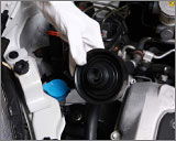 | こちらは耐震性を高めるための耐震スタビライザー。耐震性が高いということは、足まわりが硬いチューニングカーにピッタリってこと。ヘッドライトが切れやすいなんてひとは、試してみるといいぞ。ちなみに、極栗バーナーも耐震スタビライザー付きだ。 |