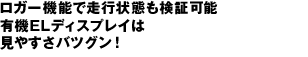 こちらは、各データの表示画面。ディスプレイに何を表示させるかを任意に設定できるようになっていて、必要なデータを好きなところに表示させることが可能だ。 | ![]() |