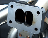 純正タービンと同じ位置にレイアウトするため、1、2番が長く、3、4番が短い作り。また、集合部は必ず上から下に集合させ、可能な限り排気干渉を排除している。 | ![]() |