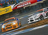 Ueo's new AVEX colored vehicle scores a perfect 100 points at the solo portion of the run. However at the tsuiso rounds after closing in on Naoto Suenaga at the best 16, his transmission gives in. Unable to shift, he swerves straight and retires from the competition. |
