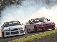 Murayuama and Kamiya both displayed spectacular drifting in the wet condition. Both were fairly equal but had several small mistakes, sending t hem into an over time sudden death match. Murayama leads in the 1st run but ends up spinning in the 2nd run, handing the win to Kamiya. |