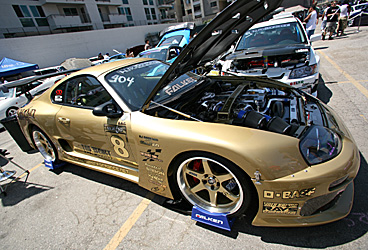 It's not an import car show without a Lexus IS! (Altezza) The US version came equipped with a naturally aspirated 2JZGE engine. The bottom end has been swapped with a turbo 2JZGTE and bolted to a LMS Supercharger kit good for 307 horses! |