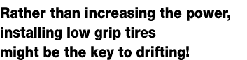 Changing the rear tires to a low grip set will make drifting easier. An RX-8 stock 16 inch rim is pictured. | |
