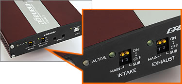 ![]() Displayed here are the main switches to the unit. There are 4 available channels to work with and on the Nissan V series engines, VVTL-i, and VTEC, the high profile camshaft switchover point can be changed. With the simple flip of a switch, the entire settings can be set back to stock. |