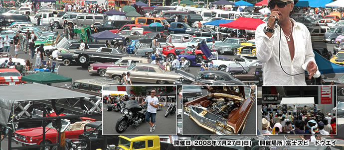 JDM-OPTIONをご覧のみなさまコンニチハ。スーパーアメリカンフェスティバル(以下アメフェス)をプロデュースしているIKURAさんです。ガソリン高騰の時代にもかかわらず、今年も全国からアメフェスに集まってくれて本当にありがとう! そんなわけで、今回アメフェスの魅力を私自らお届けしようと、JDM-OPTIONに乱入した次第です。さて、今年で17年目の16回目の開催(富士スピードウエイの改装工事の年にお休みしたので)となったアメフェスは、アメ車のカスタムカー、ローライダーはもちろんアメリカンテイストにカスタムしているなら、国産車からドリフト仕様までなんでもOKという、とにかくアメリカンカスタムを存分に楽しめるイベント。毎年気合いの入ったカスタムカーがわんさかやってくるので「見たことない」ってひとは、次回はぜひ遊びに来てくれ。つーか俺のライブもあるから絶対盛り上がるし!